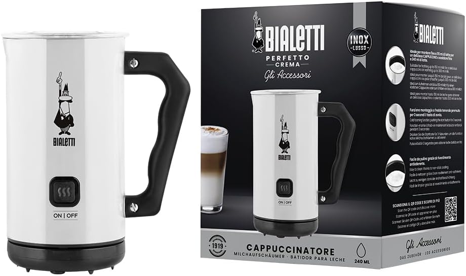 The Bialetti MK02 Electric Milk Frother is the perfect accessory for coffee lovers who want to add a special touch to every cup. Designed with Bialetti's distinctive quality and style, this frother allows you to create dense and creamy foam, ideal for lattes, cappuccinos, macchiatos, and other drinks that need that extra touch.